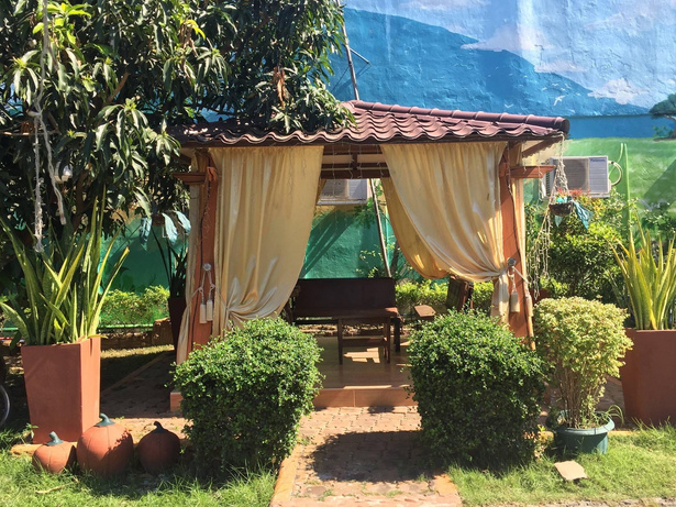 This event hall is located behind the Mansion, complete with different cottages and an umbrella to shade.